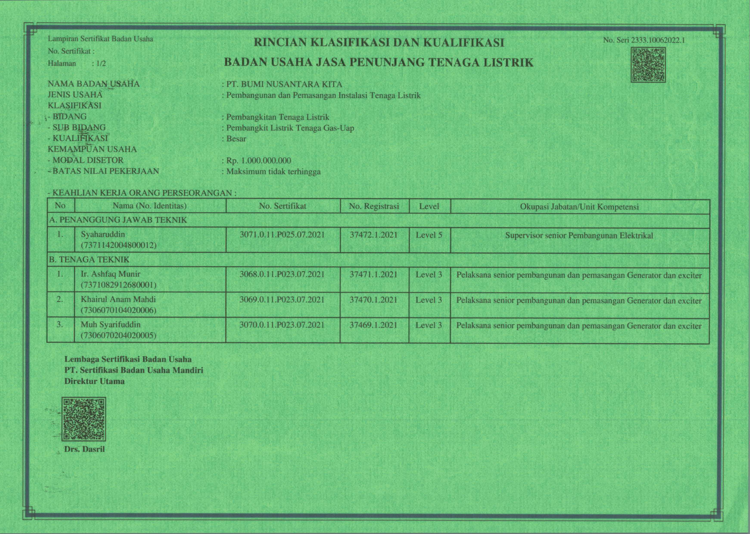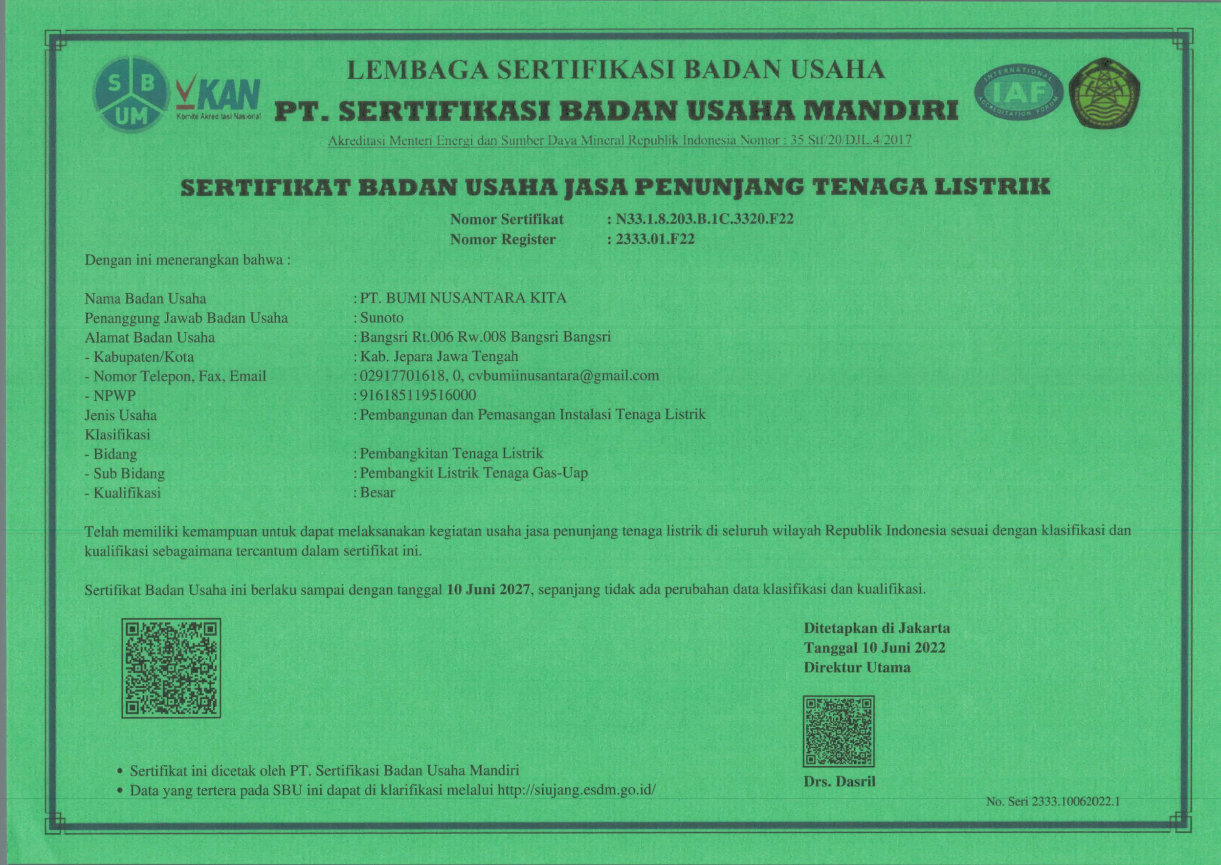 SERTIFIKAT BADAN USAHA JASA PENUNJANG TENAGA LISTRIK